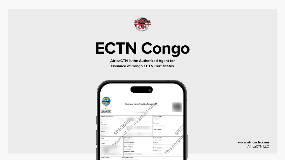 You obtain the Republic of Congo ECTN certificate through AfricaCTN, the authorized agent for shipments with a final destination in Congo