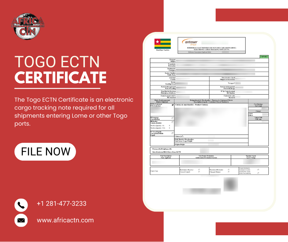 - Authorized Agent: AfricaCTN is the authorized agent for Togo ECTN certificates, ensuring you get a valid certificate prior to the deadline